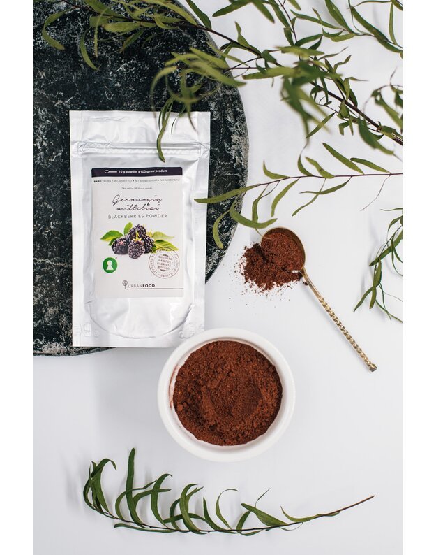 Gervuogių milteliai - natūralus produktas, pagamintas iš džiovintų ir sumaltų gervuogių uogų. Gervuogių milteliai išsiskiria sodriu skoniu ir tamsia spalva, todėl puikiai tinka desertams, kokteiliams, košėms ar kepiniams gardinti. Gervuogės natūraliai turi antioksidantų, tokių kaip antocianinai, kurie gali padėti apsaugoti ląsteles nuo oksidacinio streso. Šis produktas taip pat gali būti naudojamas norint praturtinti mitybą augalinės kilmės medžiagomis. Gervuogių milteliai gaminami be pridėtinio cukraus, dažiklių ar konservantų.