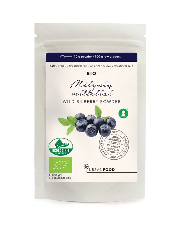 - Koncentruota: 1 arbatinis šaukštelis miltelių atitinka 100 g šviežių miško mėlynių – maksimalus naudingų medžiagų kiekis kiekviename šaukštelyje.